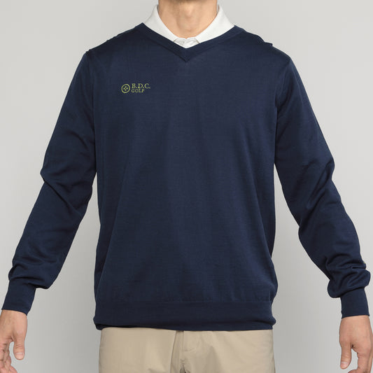 MEN Cashmere V-knit "meimon"〈カシミヤ製 Vネックニット_名門モデル_ネイビー〉